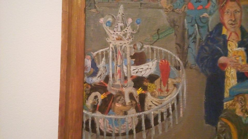 5 января в 22:55 Футбол сегодня, как обычно, в командах, приглашающих меня, не был успешен. Проиграли 2:8. Не смог помочь я ветераном (+55!) "Орбиты" из Дзержинского. Ну, ладно. Потом с Машей пошли в ГТГ на Крымском Валу. После осмотра выставок, без особого энтузиазма поднялись в постоянную экспозицию. И были вознаграждены. Полюбовались картиной Натты! "Пещера ужасов", 1981 год. Я ее раньше видел только в репродукциях.Она, или ее двойник (Натта не против вариантов всегда) была напечатана в МОСХовской газетке, как одно из лучших произведений 1981 года. Кажется, еще в каталоге "Другое искусство". Надо отметить, что картина безукоризненно сделана. Тщательно (а Натта далеко не всегда этим увлекается) выписаны лица, одежды, выразительные движения и позы. Вот, посмотрите какие колоритные персонажи на первом плане - -пьют пиво и курят! В те годы делать их героями могли только обличительные сатирические журналы, художникам положено было воспевать советских трудящихся. Натта это делает тоже. -Вот "взвешивательница", не отходя от рабочего места штопает носок, даже наперсток выписан. -А как влюбленные пары сплетают руки! Целующийся юноша ухватил свою подругу за хвост, а она в свою очередь за что-то высовывающееся из его одежды, галстук? рукав? Надо у Натты спрашивать. -Другая пара тоже со спины, но кисти рук очень выразительны. То залезают в задний карман джинс, то находят руку друга. Видны аттракционы: дико вертящееся колесо с пристегнутыми людьми, американские горки, да и веселенькая детская карусель. Главное, конечно черная пещера с ужасами. Натта не поленилась даже обьявления-вывески написать. В общем, полно деталей, радующих глаз. Верю, что придет время и Натте в Третьяковке дадут свой зал. Тем более площади там расширяются с упразднением ЦДХ (по слухам). Владимир Королев, - не работа, а художественный фильм! Дима Широков, - Я с Наттой как раз в 1981 познакомился. Тут, наверное из парка им.Горького зарисовки. Меня там не было. Последний раз редактировалось Mikhail; 07.01.2019 в 04:18. |