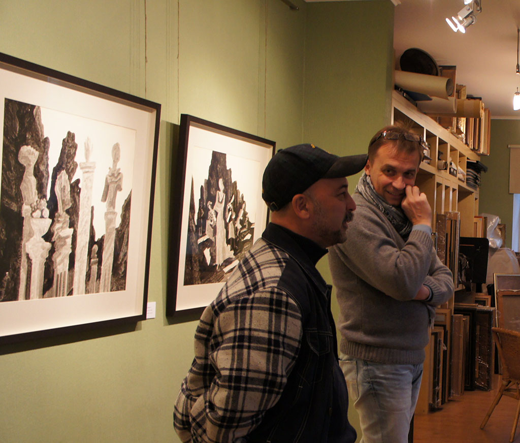 Галерея Полины Лобачевской представляет проект «На берегу» Борис Кочейшвили Живопись. Графика. Рельеф 2 — 27 ноября 2011 ВЗ «Домик Чехова (Музейно-выставочное объединение «Столица») Малая Дмитровка, 29 В искусстве московского художника Бориса Кочейшвили мотив берега занимает одно из центральных мест. Широкая полоса реки отделяет передний план от заднего и создает, при всей условности изображения, невероятно глубокое, близкое к иллюзионистическому пространство. Эту водяную гладь можно понимать как метафору времени. Борис Кочейшвили разворачивает перед нашими глазами самые разнообразные сюжеты: здесь проходят пышные пиры, прогуливаются влюбленные парочки, вступает в странные диалоги полуабстрактная архитектура. А за спиной этой пестрой компании протекает река времени. Всегда ровная и единообразная, она смывает одни события и дает начало другим, персонажи и сюжеты cменяют друг друга, но лента реки, как и всегда пустынный, другой берег, остаются неизменными. На выставке представлены работы художника. Сопровождение: видеоарт А.Долгина, музыка А.Козлова, слайд-фильм Т.Веховой. p.s. К моему огромному сожалению пропала практически вся съемка с вернисажа. Техника подвела. Поэтому публикую только фото экспозиции |