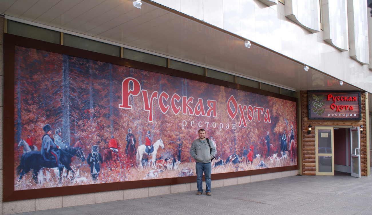 In Moscow, for advertising the restaurant "Russian hunt" in hotel "Golden Ring" I poporosili uspolzovat image of my work with the same name.