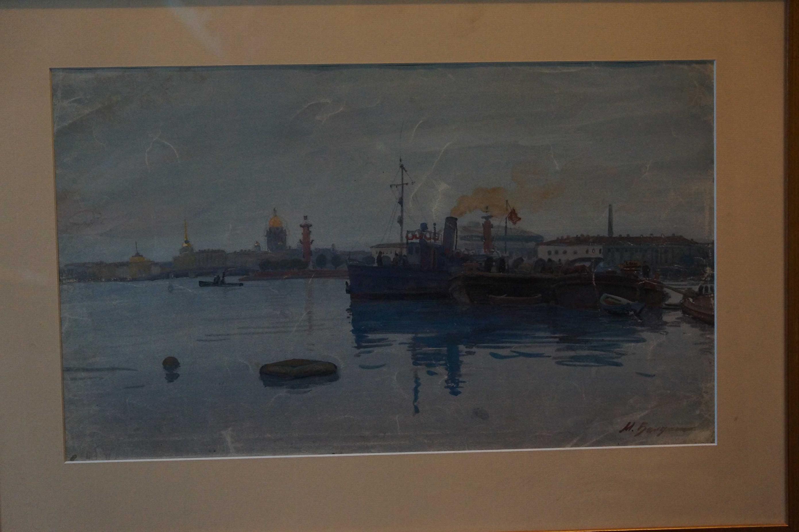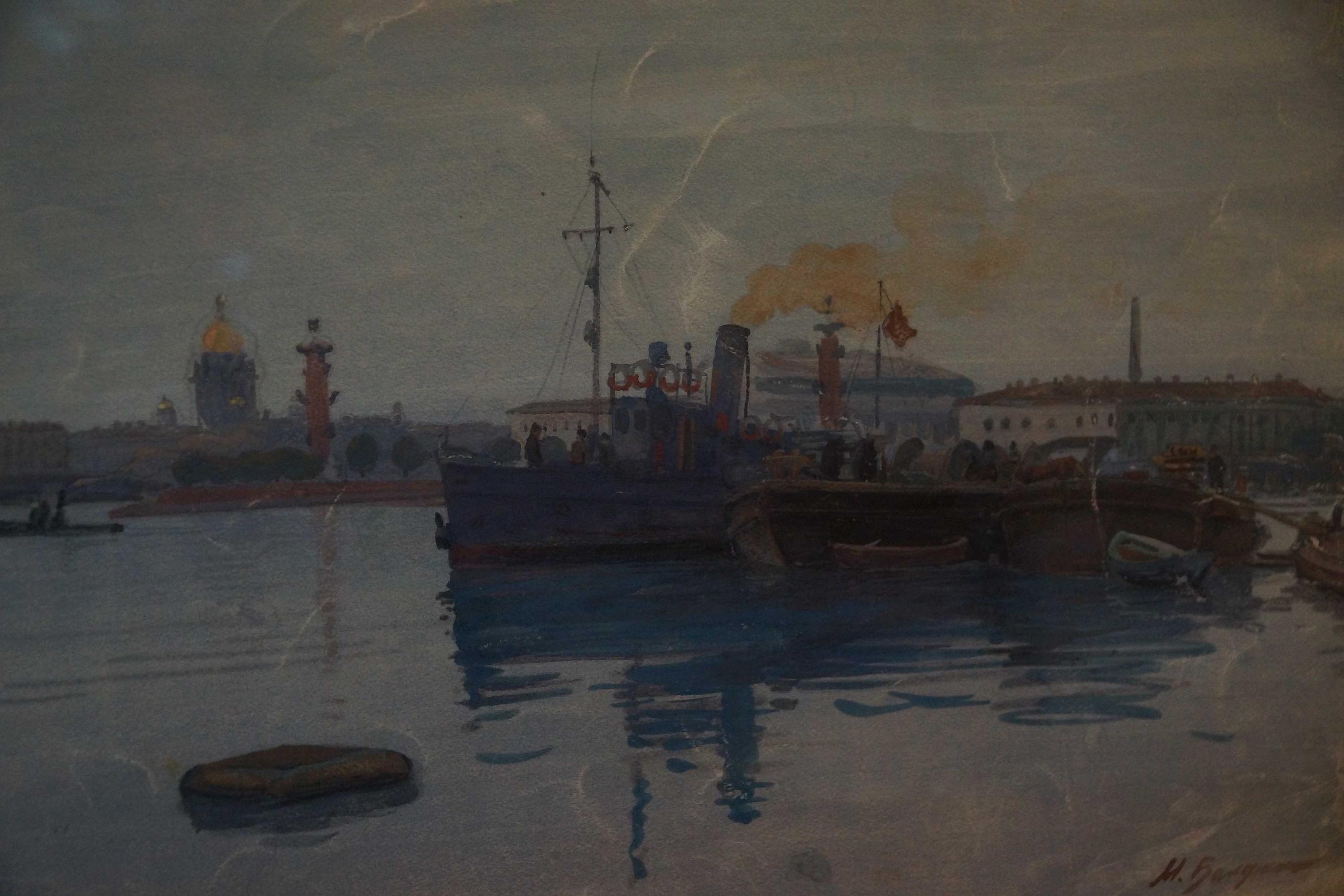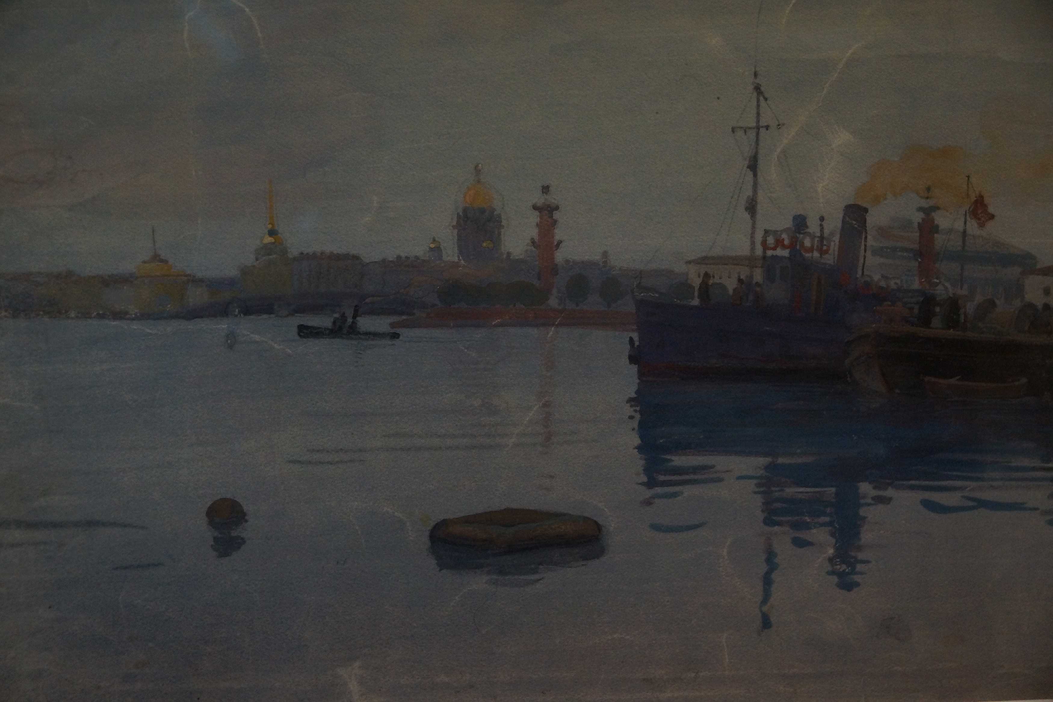 M.Balunin , "Petersburg. Vasilievsky Island ." Watercolor on paper. Russia , kon.XIX - nach.XX century .
