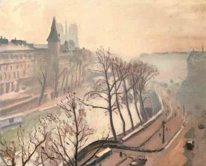 Альберт Марке умел как никто писать парижские каменные набережные и мосты, грифельные парижские крыши... Его стихия –камень и вода, серая Сена и серый остров Ситэ с Дворцом правосудия, собором Парижской богоматери и Префектурой полиции. Самое же главное у него – это небо, прозрачное парижское небо в серые дни, а именно в такие дни Париж по-настоящему зачаровывает. Искусству Марке неизвестны пароксизмы. Он, как шубертовский одинокий путешественник, тихо поет свою песнь о парижских набережных, заснеженных или опаленных свинцовым солнцем, и песнь эта известна ему одному. |
