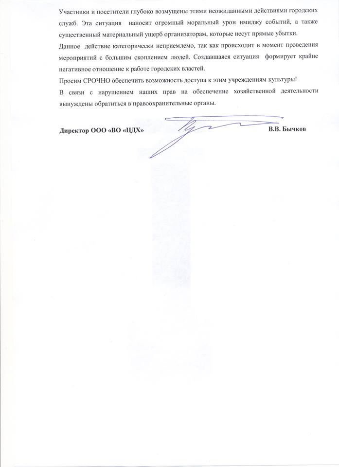 Письмо Бычкова Капкову: Вчера на завершающем этапе реконструкции Крымской набережной, доступ к ЦДХ, Третьяковской Галерее и парку Музеон был заблокирован ПОЛНОСТЬЮ. И все это во время проведения 17-ой Международной выставки современного искусства АРТ МОСКВА! Уважаемый Сергей Александрович (Сергей Капков), это чудовищный удар по событию, которое поддерживаете Вы и Министр Культуры РФ Мединский, Владимир Ростиславович.