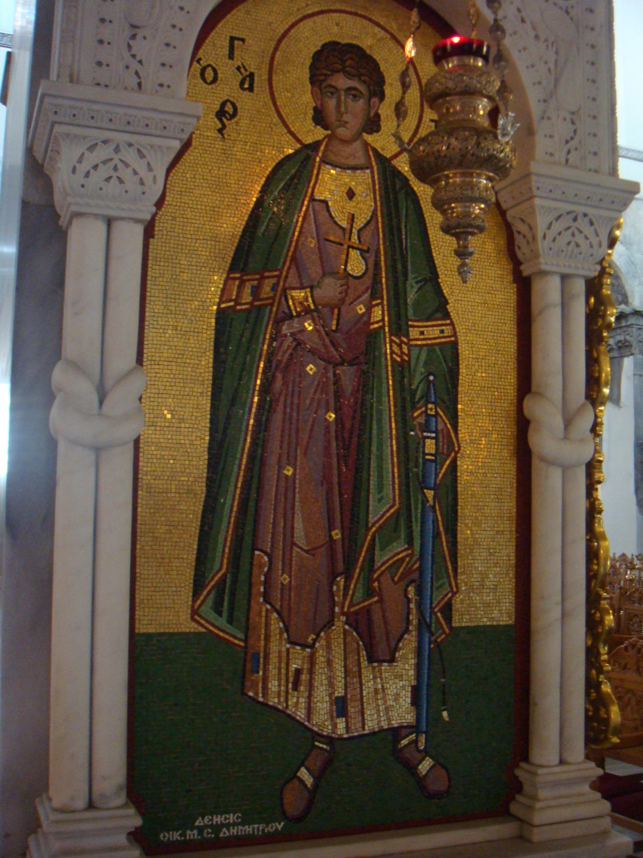 On the island of Zakynthos (ZANTE) (GR) mosaic in the church of St. Dionysius, by the way there, and his power in the silvering cancer. The temple is not very old 1935goda, mosaic I really liked.