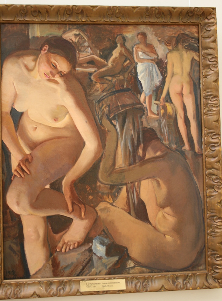 "Баня", 1912, х/м. 102Х82,5. Этюд для одноименной картины 1913 г., находящейся в ГРМ. Григорьев Борис Дмитриевич (1886-1939). "Девочка с бидоном (Утро в деревне)", 1917, х/м, 71Х62. Очень люблю эту картину. Она в ГРМ недавно, раньше была в одном ч.с. "Портрет режиссера Всеволода Эмильевича Мейерхольда (1874-1940), 1916, х/м, 247Х168. Шухаев василий Иванович (1887-1973). Яковлев Елександр Евгеньевич (1887-1939). "Автопортеты (Арлекин и Пьеро)". 1914, х/м, 210Х142. Яковлев-Арлекин, Шухаев-Пьеро. Дормидонтов Николай Иванович (1898-1962). "Натюрморт с черепом", 1929, х/м, 84,5Х66. |