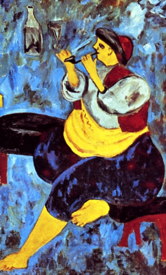 Обратите внимание как одета турчанка на псевдо-картине. Разкошистое декольте и все прелести в нём. Фото 15. (на этом моменте я сосредоточу ваше внимание чуть ниже). На 15-16 фото Ларионов представил турчанок в типичной женской одежде периода 1910 годов. Мне кажется, что есть существенное различие между одеждой турчанок с оригиналов и с Макдуггалса. Не думаю, что турчанка имела возможность в данной сцене сидеть в блузе с декольте и одновременно носить челму на голове. Смотрите фото фрагментов.  Откуда же возникла идея декольте? Как ни странно, листая монографию дальше, нахожу краткую земетку о Пиросмани (мы много об нём говорили вчера) и нахожу репродукцию одной из его работ – фото 18. Не похоже? У меня создалось впечатление, что ребята, поработавшие над данной картиной, руководствовались именно монографией Ковтуна. |