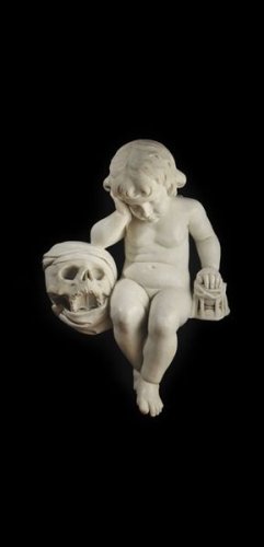 Путто, сидящий на черепе. Мрамор, 80 х 50 х 38. Франция, XVIII век.
