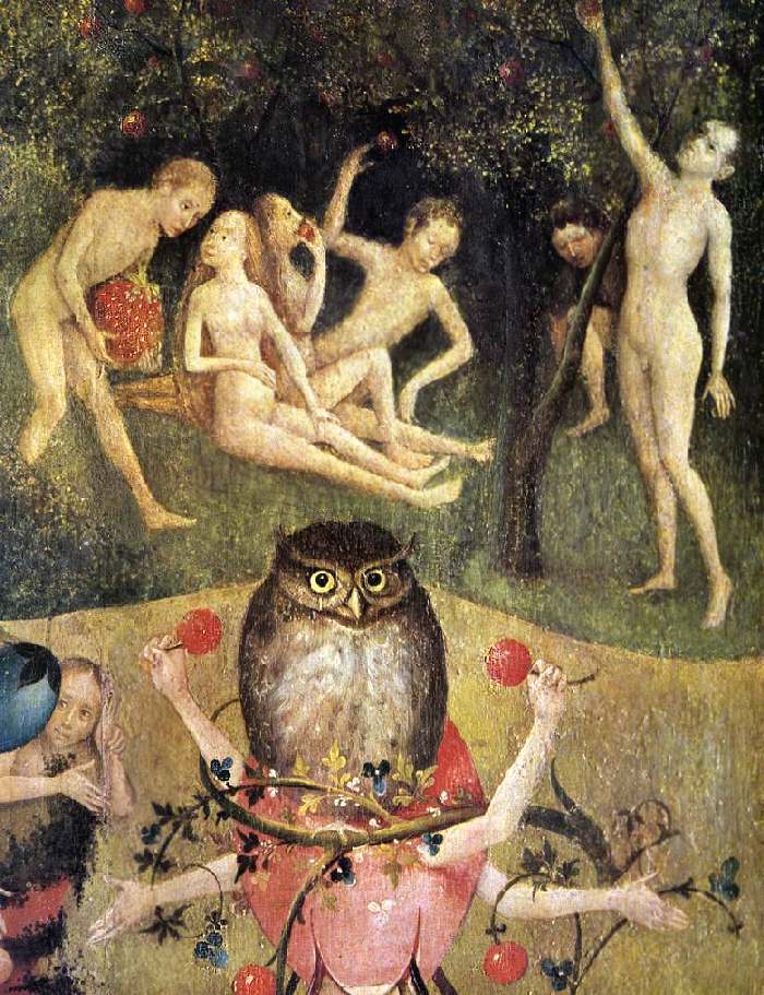 Hieronymus Bosch creates a striking world of ephemeral desires and sensual pleasures: aloe digging into bare flesh, coral firmly grasps the body, shell closes and turns amorous couple in their captives.