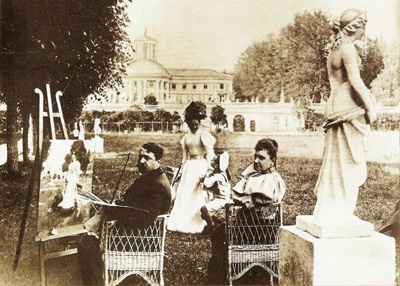 "На лето мы уезжали в Архангельское. Многие друзья ехали проводить нас, оставались погостить и загащивались до осени. Любил я гостей или нет – зависело от их отношения к архангельской усадьбе. Я терпеть не мог тех, кто к красоте ее был бесчувствен, а только ел, пил да играл в карты. Их присутствие я считал кощунством. От таких я всегда убегал в парк. Бродил среди деревьев и фонтанов и без устали любовался счастливым сочетаньем природы и искусства. Эта красота укрепляла, успокаивала, обнадеживала. Иногда я доходил до театра. Забирался в ложу для почетных гостей и воображал, что сижу на спектакле, что лучшие артисты поют и танцуют для меня одного. Я представлял себя прапрадедом князем Николаем и полновластным хозяином Архангельского. Порой сам поднимусь на сцену и пою, будто для публики. Иногда до того забудусь, что думаю, меня слушают, затаив дыханье. Очнусь – смеюсь над собой, и в то же время грустно, что чары рассеялись. По воскресеньям после обедни приходили крестьяне с детьми. Дети угощались сластями, их родители излагали просьбы и жалобы. Крестьян внимательно выслушивали и почти всегда удовлетворяли. В июле проходили народные праздники с хороводами и пеньем. Любили их все. Мы с братом были на них непременно и ждали их с нетерпеньем каждый год. Простота наших отношений с крестьянами, наше братство при всей их почтительности поражало гостей иностранцев. Гостивший у нас художник Франсуа Фламан (Франсуа Фламенг / Francois Flameng) был этим совсем потрясен. Архангельское так полюбилось ему, что, уезжая, он сказал матушке: «Княгиня, как покончу рисовать, позвольте наняться к вам на должность почетной архангельской свиньи!». - Портрет княгини З.Н. Юсуповой с двумя сыновьями в Архангельском работы Франсуа Фламенга. 1894. - Фото: Ф. Фламенг пишет портрет З.Н. Юсуповой в парке-усадьбы. - Портрет княгини З.Н. Юсуповой работы Франсуа Фламенга. 1894. - Франсуа Фламенг (1856-1923) Последний раз редактировалось tchaika; 15.07.2010 в 15:28. |