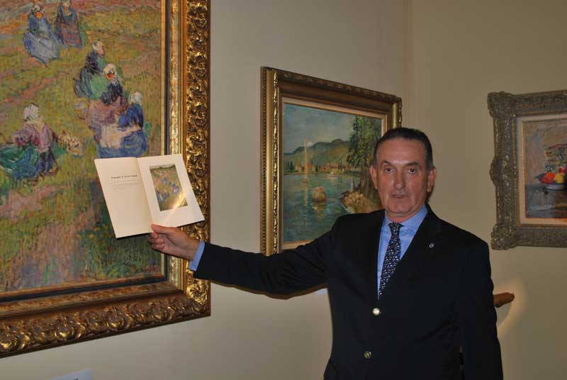 P.S. На втором фото - галерист Каплунов на фоне картины Тархова и с подтверждающим каталогом выставки в руках.