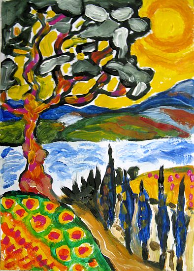 Рисунки акрилом на писчей бумаге формата А3, то есть 41х29 см (не А4, которая обычная писчая, а в два раза больше), поэтому чуть морщит,но со временем разгладится. За любые две штуки из этой подборки 900 рубл. Интернет-деньгами с переводом на Яндекс-деньги. Из рук в руки в г.Москве или высылаю по России обычным заказным письмом (почтовые расходы за Ваш счет). Могу покрыть акриловым лаком- будут чуть насыщеннее темные цвета и будет блестеть немного под масло. Предложение действительно только до 31 декабря 2009 г. и только для юзеров форума. Художник Ixygon, он же Seriy,2009. 1.Мать и дитя (по мотивам фото). 2. Утро 3. В саду 4.Пейзаж 5.Дерево 6.Букет 7.Трубы 8.Траффик 9.Женщина в красном. (масло, бумага. 29х20,5) 10. Женщина и кувшин
