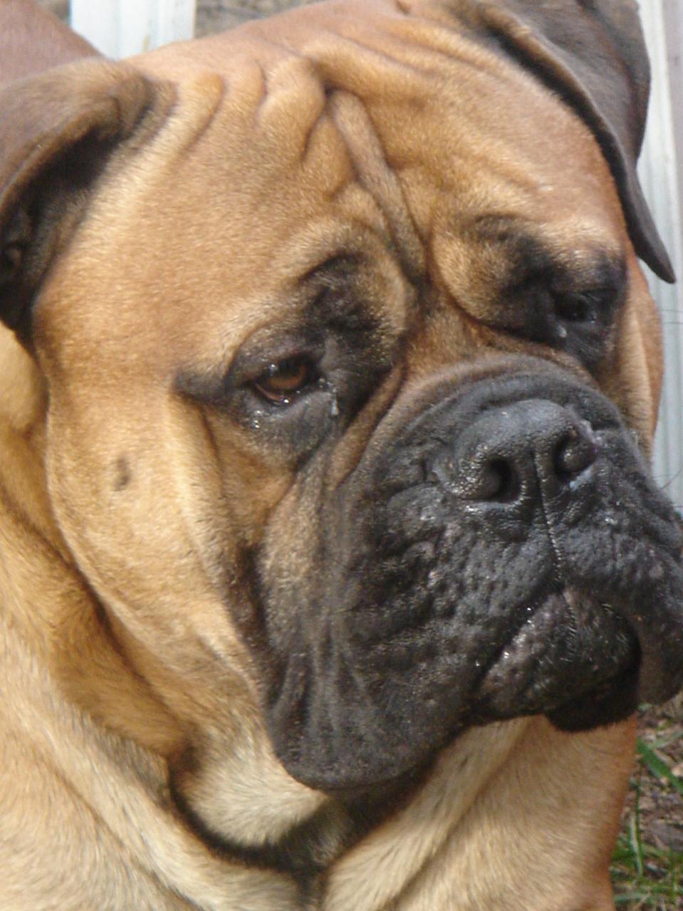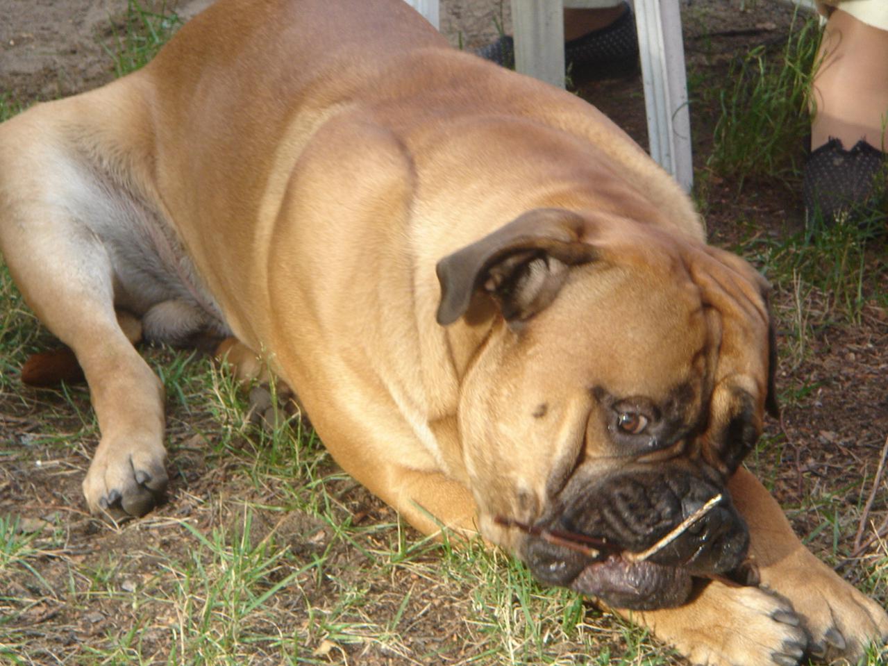 Это мой бульмастиф, кличка - Бонд (в Миру - Боня). Ему всего годик, весит около 60 кг.