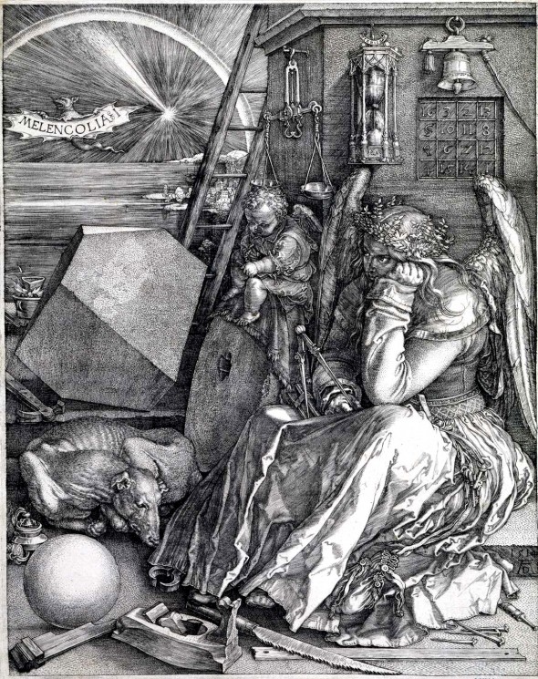 В таком случае, графический лист Дюрера "Меланхолия" может подойти для образа одного из принципов. Это один из самых загадочных образов художественного мышления, и с "миром идей" он связан точно... Главная фигура погружена не просто в размышление, но она сама почти Идея... вокруг разбросаны другие символы человеческого мира...