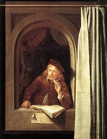 "Надеюсь что это одна из самых ранних картин Герарда Доу (Gerard Dou), Написанную им (по заключению некоторых экспертов) в бытность Доу учеником Рембранта, либо сразу после отьезда Рембранта в Амстердам в 1631-1632" Соглашаюсь, что такая картина - образ, синтезирующий принципы "Люди+Слово". Видно, образ такого эволюционного принципа не давал покоя Герарду Доу Автопортрет Старая женщина за книгой (мать Рембрандта)