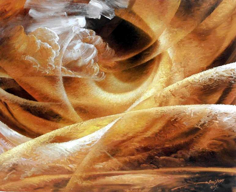 Artworks reflect the movement of psychic energy in space. With the momentum of thought has the energy, which saturates the space. Of all the energies of the finest is a thought. Physical fire, which we know has spiritual properties. This quality corresponds to the idea of spiritual fire (Agni), which is saturating the space of flows into infinity.