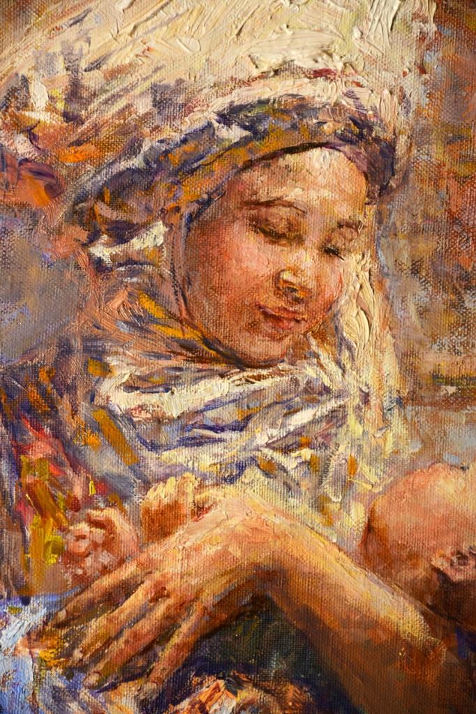 Ким Евгений, из серии "быт казахов", холст, масло, 80х60, 2020 год. "Махаббат", холст, масло, 80х65, 2019г Серия работ "Быт казахов" по истории, культуре и традициям казахского народа, которая пришлась по душе многочисленным поклонникам реалистического искусства Казахстана. Основанная на исторических, документальных свидетельствах, изучении фольклора, быта кочевья, обычаев и традиций, серия представляет собой художественно-образную летопись истории казахского народа. Художник, используя широкие возможности живописных приемов, воссоздает живые картинки былого, создающие у зрителя эффект проникновения в историческое прошлое и традиционную культуру казахского народа. Автор воспевает в своих картинах поэзию кочевья, вольный ветер степей, свободолюбивый дух кочевого прошлого.