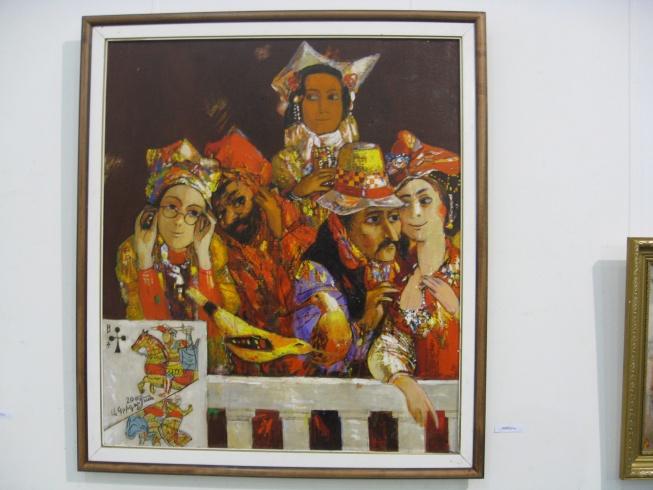 Представлю одну из картин Абгара Хачатряна (сына Серхача), яркого и самобытного художника известной династии Хачатрянов. Работы этого молодого талантливого художника демонстрировались по всей Европе, в Армении и в России. Как признается сам художник Абгар Хачатрян, «в своем творчестве я сочетаю разные стили: символизм, экспрессионизм, импрессионизм и смешиваю их с классикой». Наряду с героями его картин, изображенными в гротескной иронической манере, у художника существует серия работ с яркими и дерзкими сюжетами испанской корриды. Такое разнообразие раскрывает богатый творческий потенциал художника. В планах Абгара Хачатряна - вступление в Союз Художников Армении.