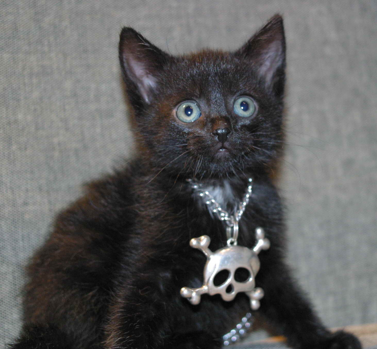 Неделю назад дети притащили двух чёрных котят. Ужас. Одного пристроили, второй остался. Освоился быстро. Ходит руки в брюки как дома. Имя дали странное - Хешер.
