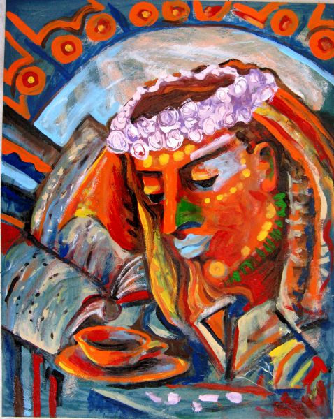 Здесь собрал работы, в которых присутствует чашка кофе. Опять символ, что означает, не знаю..может утро? или задумчивость? мысли? 1. Розы и кофе. Некоторые считают,что это чуть ли не лучшая моя работа. 50 на 60 см,оргалит,эмаль. Ноги растут из белых портретов Пикассо, были у него такие- в африканском стиле, будто написанные известкой. Там белый цвет создавался всеми цветами радуги. Здесь белого нет, но отливы-переливы есть. И Модильяни отдает немного. А розы и кофе от меня лично. И срослось :-) 2.Три девушки в кафе. Эскиз к большой работе,не сделал. 3. Портрет мужчины (воспринимаю как автопортрет). 4. Портрет девушки. 5. Девушка с книгой. Лиловым пользуюсь редко, вот заставил себя. 6. Лев. Не спрашивайте зачем венок из роз и почему чашка не белая- сам не знаю,просто хотелось зеленую тень от носа написать, остальное само пришло. 7. Апельсины у открытого окна. Крохотный эскиз на бумаге к работе,которую не написал. |