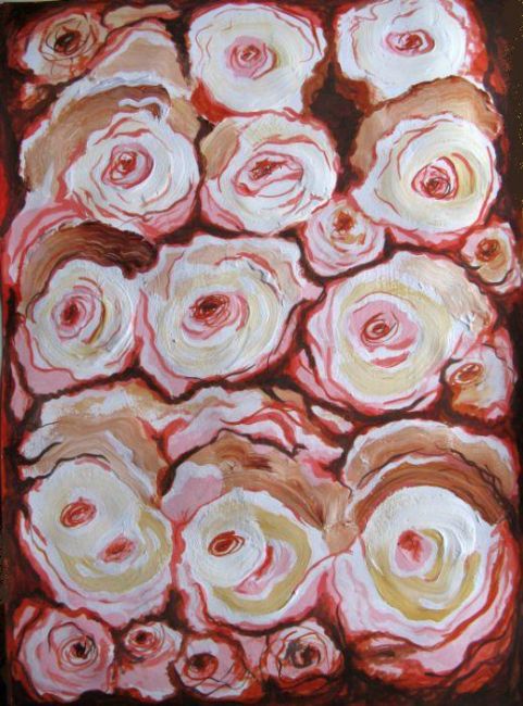 Эти работы у меня уже купили. Спасибо огромное за доверие! Кое-что я дописывал и работы в конце-концов немного изменялись. По этой причине я не ставлю сразу подписи- мешает,если правлю. Хотя надо сразу планировать место для подписи- покупателю это важно. Мой недостаток. 1.Поцелуй в метро. Навеяло старыми станциями московского метро. Надеюсь, внимательный зритель заметит, что губы в поцелуе складываются в букву М, или молнию? 2.Лица. Постер к фильму. Написал быстро как первую свою работу акрилом, потом дописывал маслом- нет нового фото. Большая, 80 на 60. 3. Перекресток. 4. Грязный портрет. То ли М.Монро,то ли медсестра. На самом деле отрабатывал технику смыва. 5. Английские розы. 6. Розы. Некоторые видят пирожные. Точнее, ВСЕ видят пирожные и только автор- розы. Купила кондитерская. (шутка) |