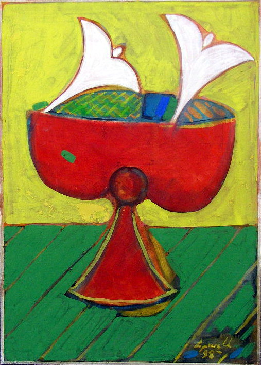 Родился в Нагорном Карабахе. Окончил факультет графики в худ.институте им. И.Репина в Ленинграде. Живет и работает в Ереване. Аванесян Г. ни на кого не похож, по моему, он достиг синтеза соединения средневековой армянской миниатюры с сарьяновским колоритным восприятием окружающей среды. Удивительный художник, христянский мыслитель и философ, работает ночным сторожем в аптеке, живет с женой и дочкой в мастерской под крышой здания, где зимой рисует при температуре 3-6 градусов, все время благодорит Господа Бога за всё что дано ему, счетает себя не достоеным к таким почестям. |