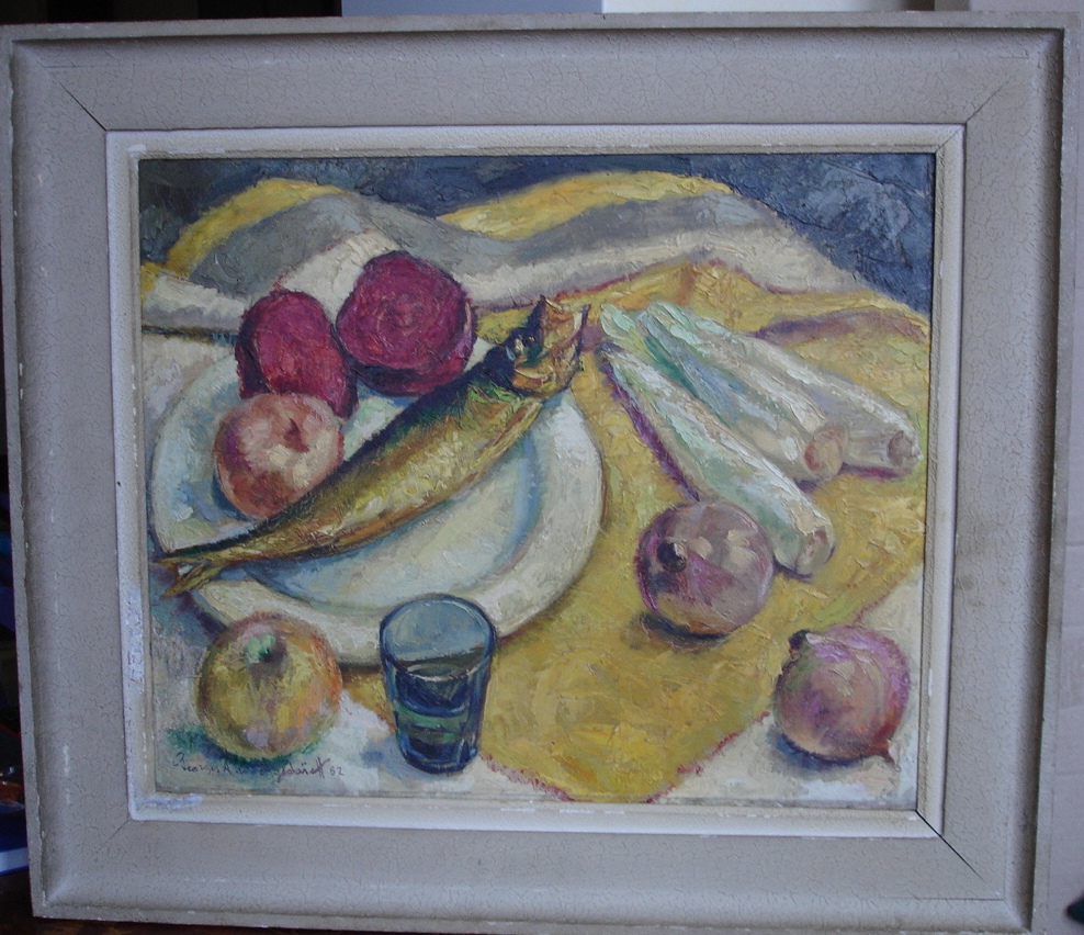 "Копченая селедка на желтой скатерти - 1962 год" Даже не знаю какую цену ставить. Куплено было на пике цен. Платил 15 тыс дол 15-04-2008 года Рассмотрю предложения. |