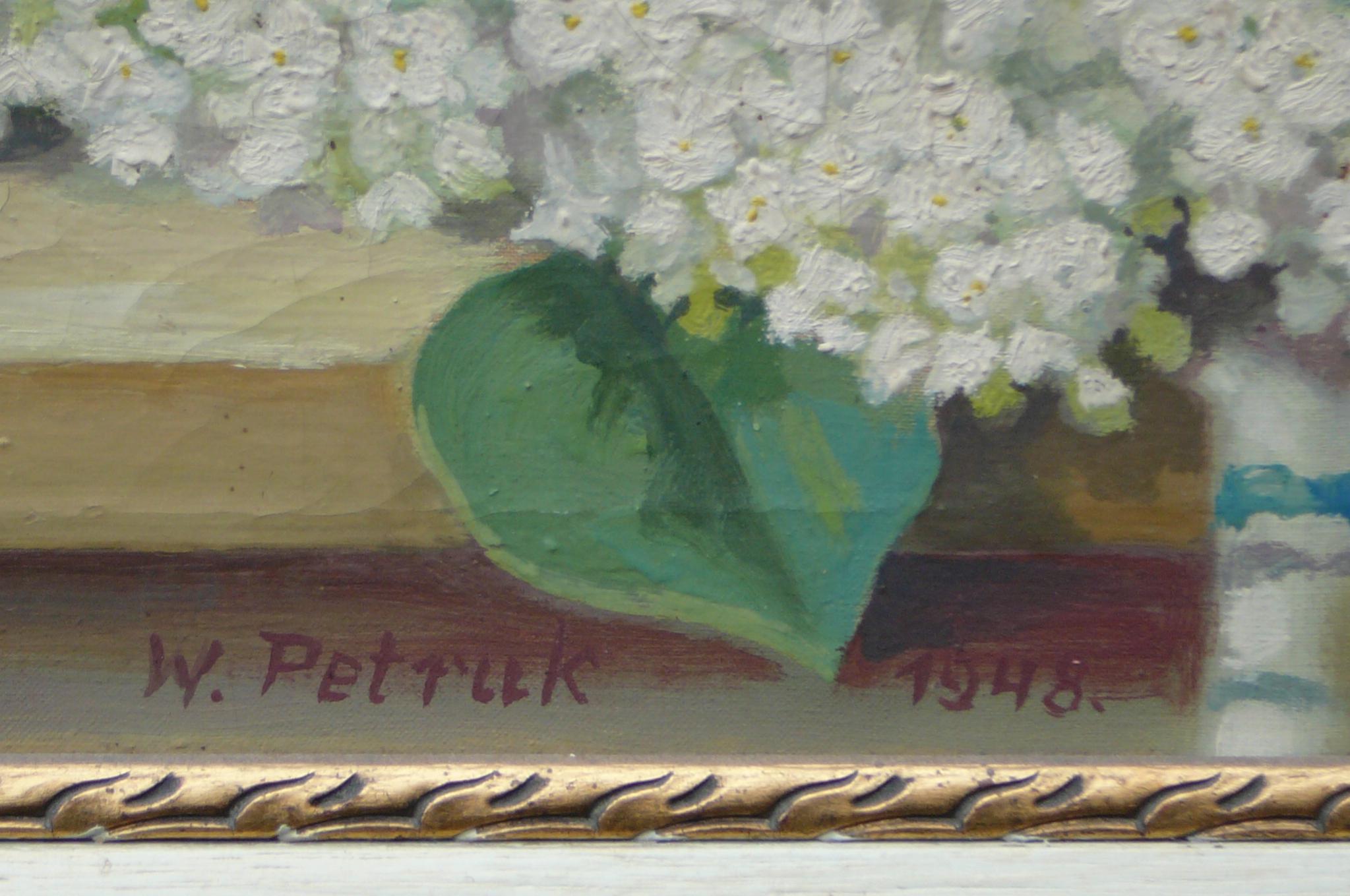 1. "Сирень", масло на холсте, 34х45,подпись W.Petruk 1948. 2."Меркенфритц", масло на оргалите, 34х54, подпись W. Petruk 1941. |