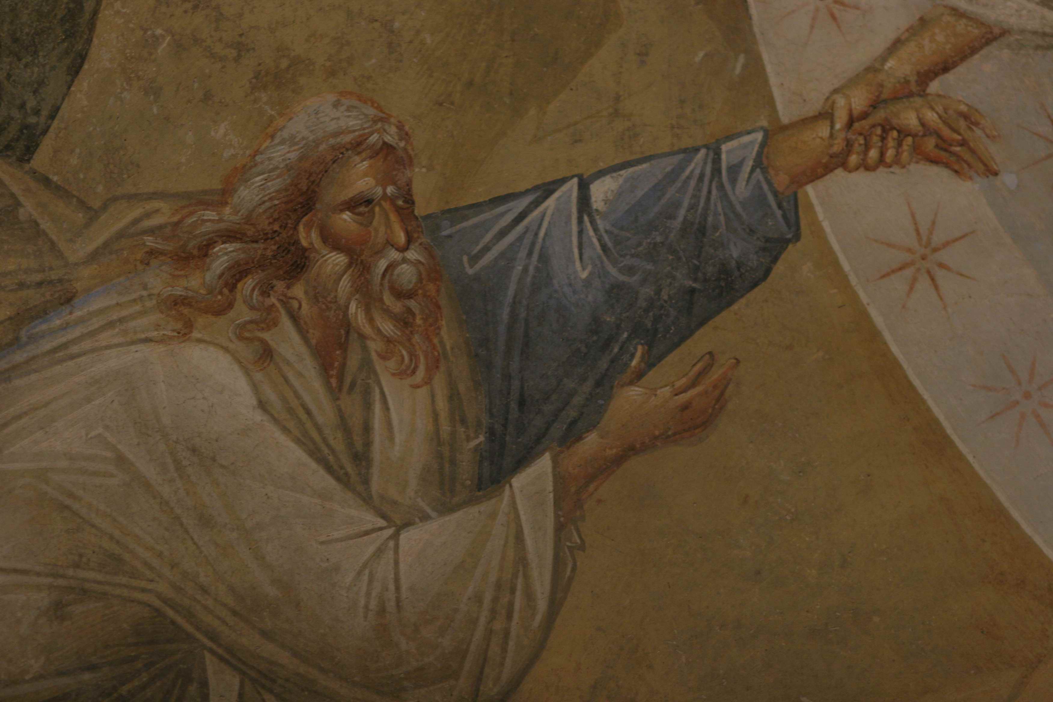 По обе стороны от входа в наос изображены апостолы Петр и Павел (портрет палеологовского интеллектуала: высокий лоб, пронзительный прямой взгляд). В священных образах часто воплощались идеалы времени.