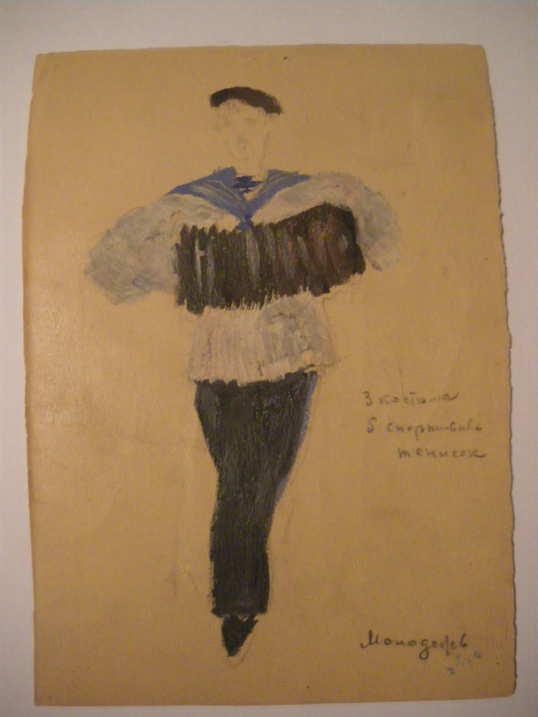 1,2,3,4. Artist Axelrod, January 1947, but which is: Meer, Arius, Moses? Hitch before the signature is similar to the "A", but to find and see the work of Aria Axelrod (Axelrod and Moses) in general has not yet happened. I do not know whether they worked with theatrical productions. Meyer worked as a time for this time, to 1947, then he had a creative tour of the country. On schedule, on the hand, in my opinion, some of Meyer, what I could find, it seems. For example, his picture from the gallery of "Ark" (4). Signature not like, but they can vary depending on time and on the job. His theatrical sketch on http://artinvestment.ru/auctions/197...work_id=635980, certainly not like this, but it is not sold. She read that the majority of his sketches of scenery and costumes are stored in the Theater Museum Bakhrushina. By year of life like all three of them coincide with the date on the sketch. Maybe someone will recognize the signature for? -------- 5. N /x, year 1960, an inscription in pencil: 2 pers., The city guard. Here, of course, very difficult case, but who knows ... a good sketch. -------- 6,7,8,9,10. The sketches, which I really like. This Boris Volkov, a student Lentulova and Tatlin, and three times winner of State Prize. "Sevastopol", 1945, paper /oil, 24h16, see Volkov Boris Ivanovich, 1900, Moscow - 1970, ibid, Soviet theater artist, folk artist of the USSR (1965). He studied at the Stroganov Art School (1913-18) in FF Fedorovsky, in the workshops of the People's House (1913-16) in D. Polenova and in the Higher Art (1918-23) in A. Lentulov, EG Larionov, DP Shterenberg etc. Member of the GRL. In 1924-40 the main artist of the theater. MGSPS (now them. Mossovet) in 1941-49 - Musical Theater. Stanislavsky and Nemirovich-Danchenko, from 1951 - of the Maly Theater. In early works the influence of constructivism ( "Storm" Bill-Belotserkovsky, 1925, Theater. MGSPS). In subsequent years, turned to a combination of volume and picturesque scenery, has an important role of the lyrical landscape. Among the works: "Family of Taras" Kabalevsky (1951, USSR State Prize, 1952) - in the Musical Theater. Stanislavsky and Nemirovich-Danchenko, "Green Street" Surova (1948, USSR State Prize, 1949), "second love" Maltsev and Venkstern (1950, USSR State Prize, 1951) - in the Moscow Art Theater, "Smart Stuff "Marshak (1965) - of the Maly Theater. He was awarded the Order of Labor Red Banner and medals. But there is no auction sales of his works, which may be the approximate value of these sketches, though, and sell them'm not going.)) |