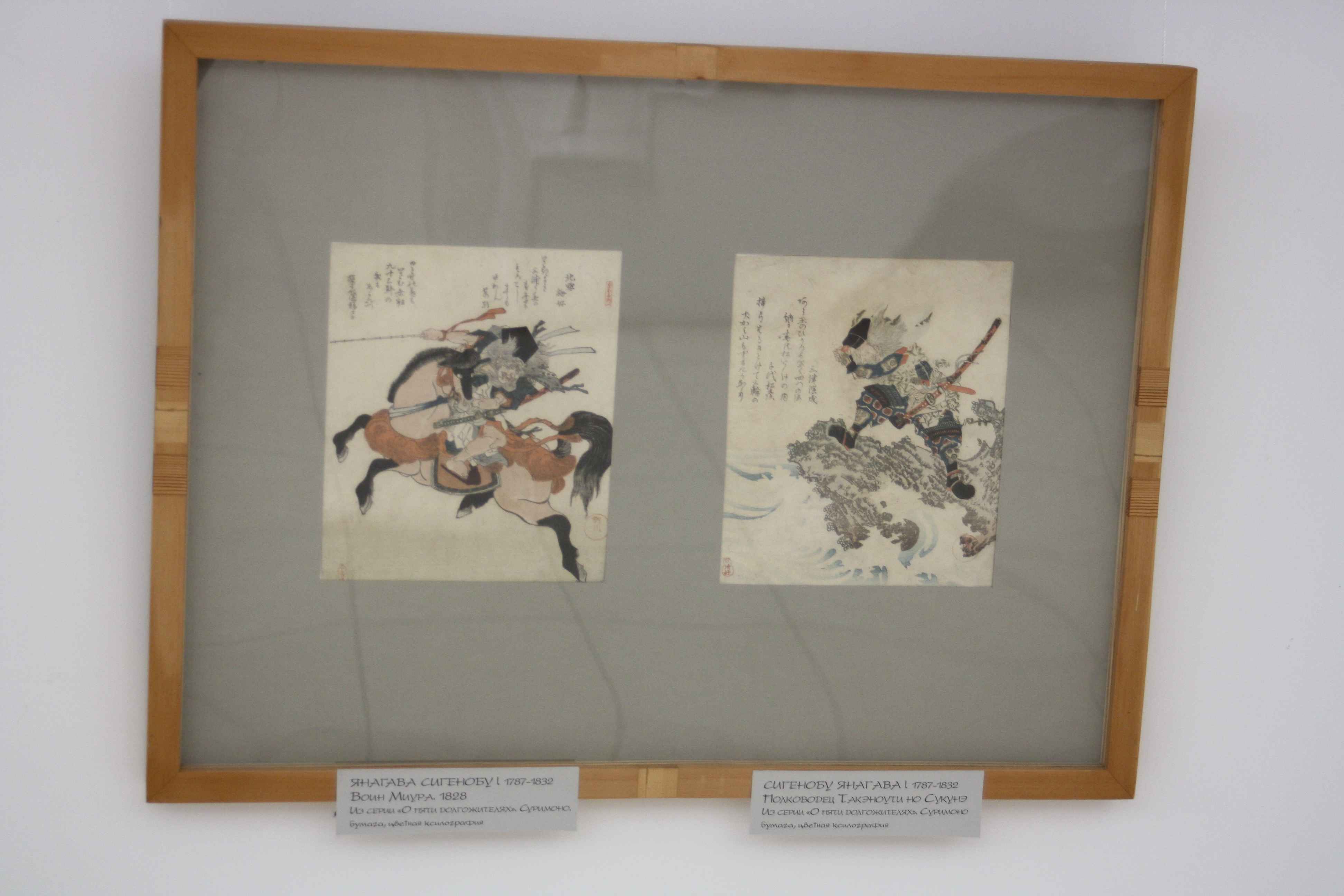 японской гравюры .В экспозици представлена коллекция японской цветной ксилографии школы Укиё-э из фондов Краснодарского художественного музея. Большая ее часть, 190 графических листов, была передана из НКВД в 20-е годы прошлого века. В 1998-1999 гг. собрание было выставлено в Мацумото (Япония), был выпущен каталог на японском языке. Стало известно, что произведение Тоекуни Утагавы "Воин Согагора Токимунэ" — единственный в мире сохранившийся экземпляр. В коллекции представлены гравюры самых известных мастеров эпохи Эдо: Хокусая Кацусики, Кунисады Утагавы, Эйсэна Кэйсая, Эйдзана Кикугавы, Итирюсая Хиросиге. Стиль "укиё-э" являет зарисовки повседневной жизни. В центре внимания художников были прекрасные дамы, актеры и сцены из театральных постановок, сцены созерцания природы, праздники и фейерверки. Со временем к этим темам добавились иллюстрации литературных произведений и военные хроники.