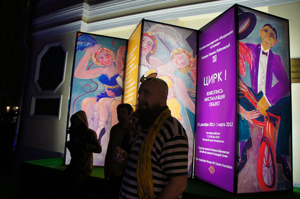 Gallery Pauline Lobachevsky is  project «C & R K!» Painting. Installing the. The object. Exhibition Hall of "Chekhov's house" (Museum and Exhibition Association "Capital") December 16, 2011 - March 1, 2012. Admission is free. Address: ul. Small Dmitrovka house 29 /4 Circus - eccentric, focus, risk, skill on the verge of fantasy, laughter, and sometimes the Homeric, till you drop! All this has attracted artists since ancient times - first, nameless, and later known by the name - was the first Bosch, Bruegel the Elder then ... And so in the nineteenth century circus went charmed powerful jamb - Goya, Daumier, for them - Degas, Renoir, Toulouse-Lautrec; in the twentieth century - Picasso, Matisse, Dali, Fonvizin, Tyshler, Rodchenko, and Marc Chagall, in a recent paper that "The Big Circus," the world is represented as a circus in which all of life lies in the range of the arena. Artists, works with our gallery - star art scene of the second half of the twentieth century and twenty-first century masters - captured the theme of joyful submission, which for many artists becomes a metaphor for human life and the modern artist in the world. Masters, working with our gallery, especially for the project made objects, installations, invented miracles and magic tricks that only as "Circus" will not name. Our bright, cheerful and eccentric art project is addressed, like the circus, and for children and adults. And we hope that during the Christmas holidays visiting our gallery will be a joyous family output. The program includes clowns, magicians, animals and attractions. The submission involves: Anatoly Zverev, Boris Messerer, Vladimir Stenberg, Mstislav Dobuzhinsky, Natalia Severtsov, Alexander Rodchenko, Francisco Infante, Vladimir Nasedkin, Tatyana Badanin, Lyudmila IADB, Alexander Dolgin, Iraida Yusupova, Katja Filippova, Marina Belova, Aleksey Politov, Catherine Manshavina, Leonid Tishkov, Svyatoslav Ponomarev, German Vinogradov. Project curator Pauline Lobachevsky /Music: Iraida Yusupova /With the support of AVC Charity Foundation /Project Designer Gennady Sinev /project coordinator Natalia Volkova Exhibition Hall of "Chekhov's house": tel. +7 (495) 694-28-19 tel.: 8 (903) 774-74-32, www.plgallery.ru Exhibition Hall open from 12-19 hr., Day off - Monday. Admission is free. From 31/12/2011 to 01/02/2012 Exhibition Hall will be closed. Добавлено через 13 минут At this exhibition is to go, despite the New Year's bustle and traffic jams. The bright, varied and at the same time profound, provocative meditation on the art and of our time - this exhibition will amuse both children and adults. 1-3. Poster. German Vinogradov and authors kinetic sculptures made a circus performance at the entrance to the gallery 4. Project curator Natalia Volkova against the wall, "the name of Sulfur" 5-8. Video art by Alexander Dolgin, "Circus." Starring German Vinogradov. The film is quite long and very varied plot twists happen to the hero of Vinogradov in this video. Witty, fun, but this film is not pure entertainment. It seemed to me that this story about the internal "circus" of any talented and bright person. There, and the flames, and elephants, threatening to trample the hero, and flying in a dream and waking, and dance and split (razdesyatereniya))) of the individual. Vinogradov - amazingly talented mime, watch his reactions to what is happening on the stage of his "I" - pure fun! Dolgin, as usual, got to the point. 9-10. Ludmila Mabre "Fish Circus." The kinetic installation. Singing and dancing fish. A very graceful thing. Добавлено через 8 минут 1. Circus sketches Boris Messerer 2. Iraida Yusupova - author of the musical accompaniment exhibition ( those who did not read the name of the composer's first few minutes of listening , and then asked , " What have you there for an unknown circus Dunaevsky sound? "  >)Aleksndr Dolgin - the author of Video Art Boris Kocheyshvili - artist 3. Circus sketches Boris Messerer 4. Francisco Infante (his kinetic objects presented on the second floor exhibition hall ). 5-7. Natalia Severtsov . Three paintings on the theme of the circus. All 1967 , oil on canvas . 8. Alexander Rodchenko's " Ground acrobats ," 1943. Paper mounted on cardboard , gouache. 9-10. Very entertaining and unusual installation of the optical tricks CYLINDERS inside . Unfortunately did not record the author ... The kids were thrilled! Добавлено через 16 минут 1. Alexander Rodchenko's "Women's Pyramid" in 1936. Author's imprint. 2. Anatoly Zverev. "Clown" 3-7. The work of Leonid Tishkov (names I did not record) This installation has made a deep impression on me. I'll describe in a nutshell: on the edge of the arena sits a clown in a cage - "firm" Tishkovsky month, around the perimeter of the arena covered with sawdust. The clown who can not see the person in thick red wig, sits and stares at the scene where the main action takes place ... On the stage projected film by Leonid Tishkov. An amazing film about the loneliness of man in this vast world within the bustling crowd. On the vast scale of this world, fit, for all that, within a small circus arena. Contrast the sad clown in the most simple clown garb and that accurate and comprehensive film about the people-ants and their lives in the modern world is simply amazing. And it's not all! I have not written about the schedule and Stenberg Dobuzhinsky not told about the curious interactive "spaceship" Nasedkina and much more. To be honest, I did not expect that this project was so interesting and at the same time serious, funny, and at the same time tragic. And it is very human. Gallery Pauline Lobachevsky Bravo! Bis! Последний раз редактировалось Тамара; 19.12.2011 в 18:48. Причина: Добавлено сообщение  |