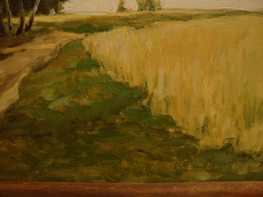 This pattern is written Semenov Mikhail Ivanovich (1915 - ?)?... not found on the internet of his work, to compare the signature on the painting. Maybe someone has it working? |