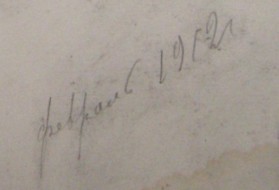 Thick paper, pencil. Size: 38 x 27. Right under the pencil drawings: February 1912, July 1911. |