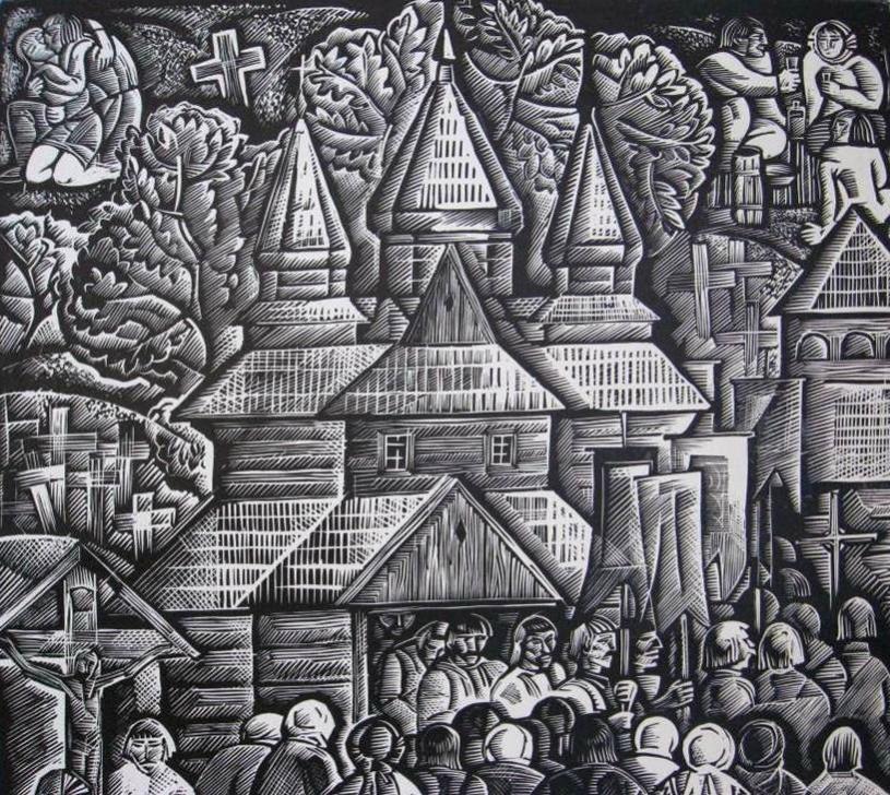 1. "Гуцульская свадьба" - линогравюра, акварель 44х55 см.
