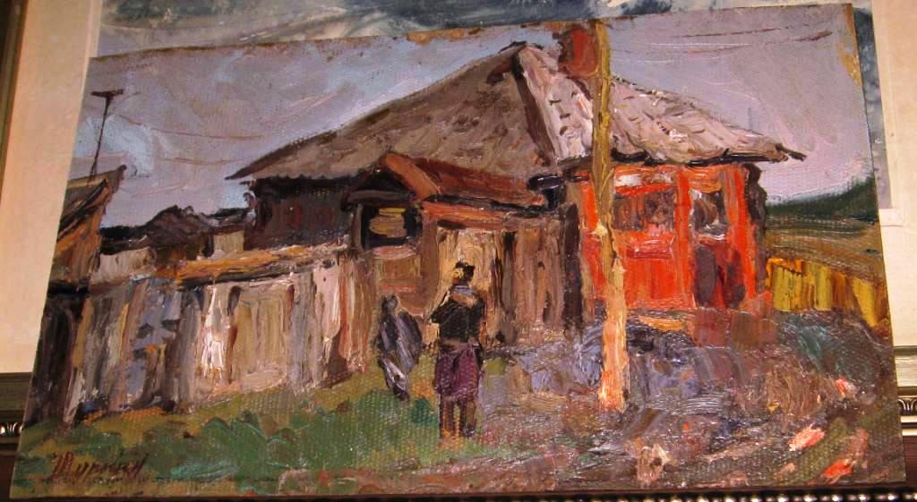 "Деревня, на улице", 1960-70-е, картон/масло 25х41 см. Цену предлагайте. |