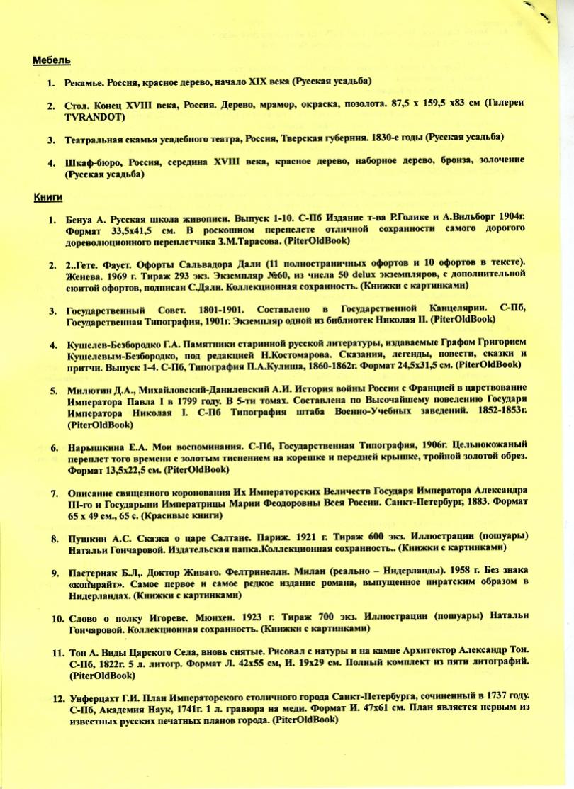 Что привезли: Иван Шишкин – 1 200 тыс. долл. Сильвестр Щедрин – цена не называется. Боголюбов. Венеция – 270 тыс. долл. Ковалевский – 80 тыс.долл.