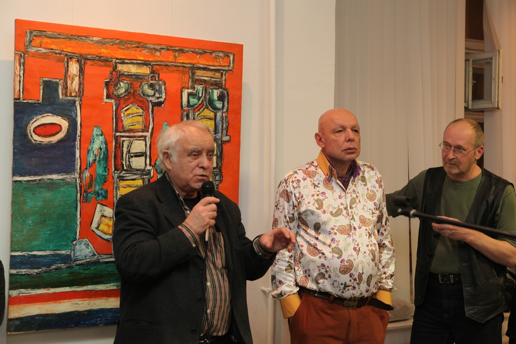 Эта выставка запомниться многим и надолго.И не только потому,что работы авторов были очень честные,личностные и дополняли друг друга даже своими стилистическими противоречиями,но и тем ,что в первый весенний день все присутствующие были очень жизнерадостными и добрыми .Все сияло красотой,даже рубашка Дудинского была великолепна,а Люсины кружева и Лерены серьги восхищали своим местонахождением многих.У Конышевой наброски не получались -перед ослепительным обаянием ее великий сарказм померк,но надеюсь не надолго. Выставка имеет продолжение и будут новые открытия и новые друзья. И это великолепно!