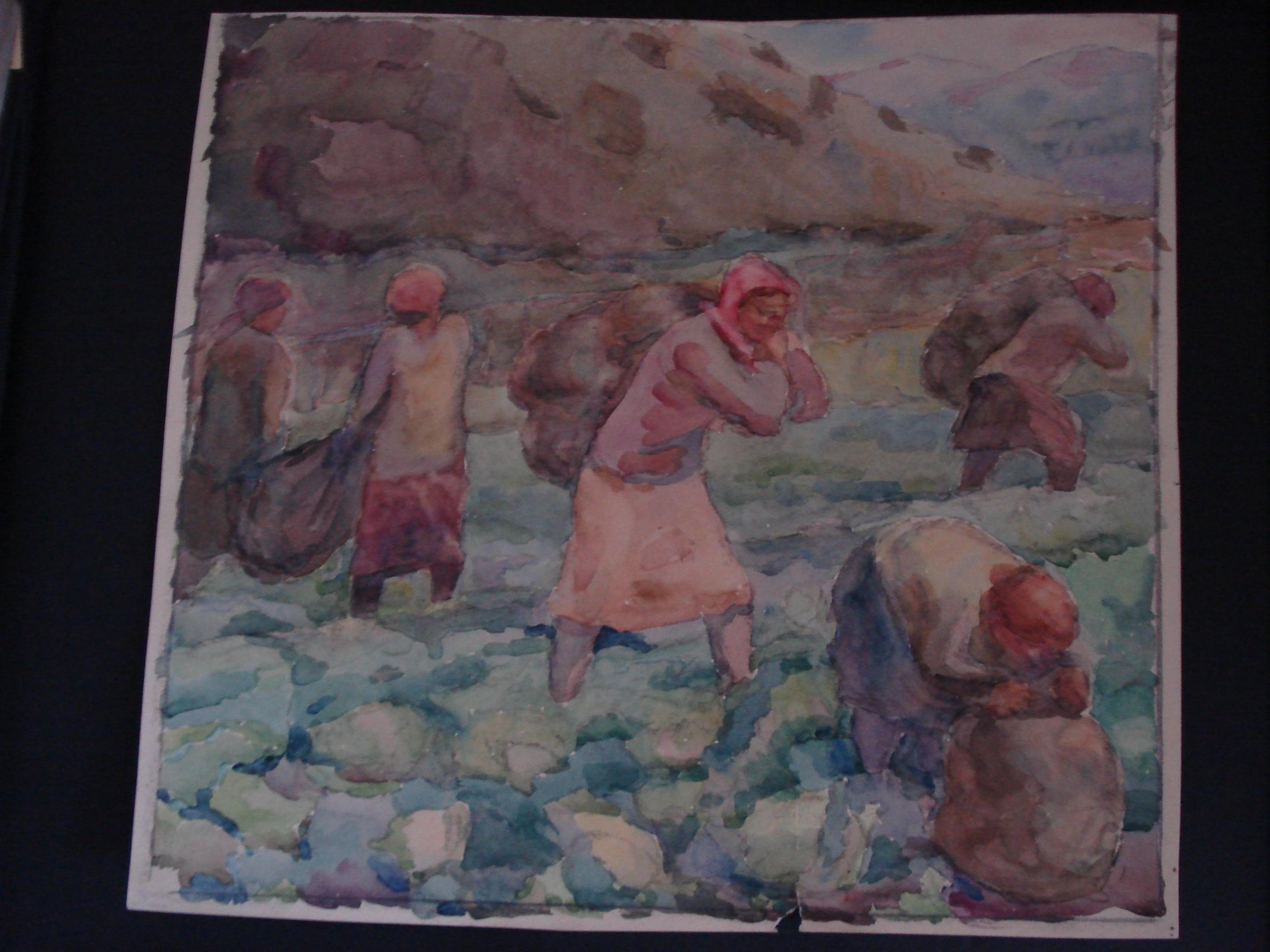 Сбор капусты 1930-е 32 Х34 бум,акв.