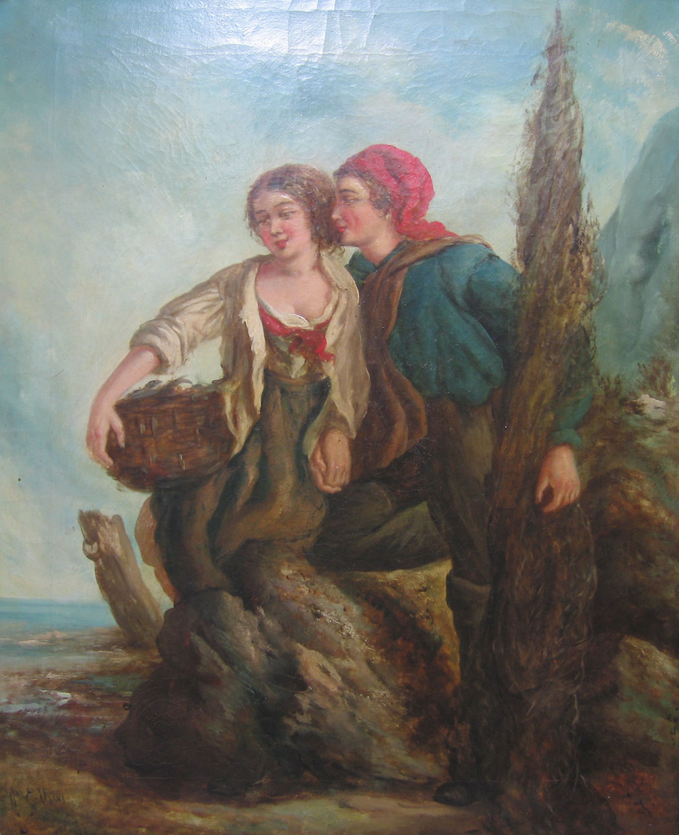 Alas, the human ... Colours of the typical copy-peyzazhika ... This copy is probably the first half of the 20th century. Painting Collins also frankly strange ... Why would a young person needed to embrace fir?? |