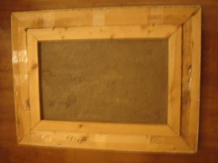 при жизни автора картина была вырезана, что очевидно, и потом повторно натянута на подрамник, лет 50 назад...возможно наклеить холст на доску или картон и увеличить этим размер картины...но тогда будет не видна тыльная часть.....а там видны остатки старой надписи - видимо, название некой картины предположительно 1967(?) года...есть у меня подозрение, что картина написана на другой картине...чья там может быть картина?)