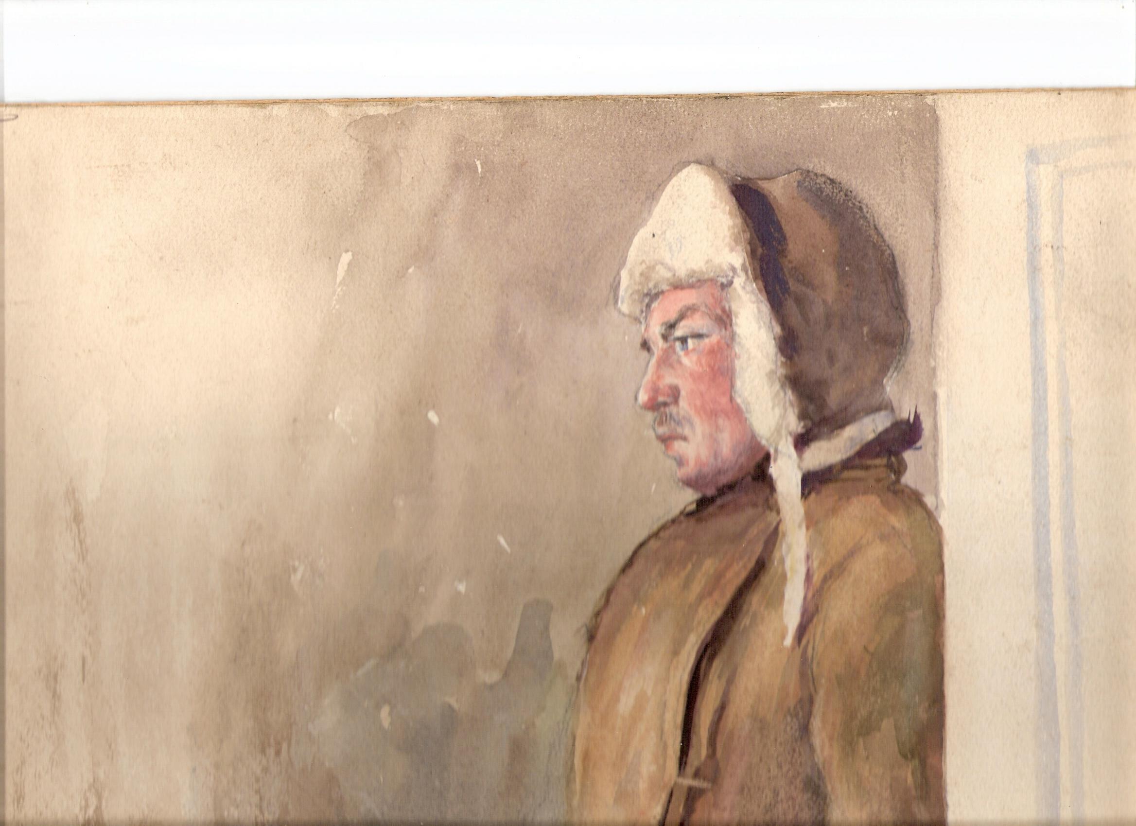 акварель К.Лепилов "Ямщик в тулупе" 1917 год. Бумага,акварель. 50х32 см. |