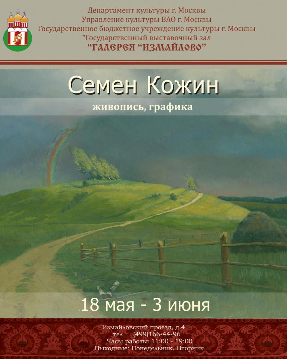 Семен Кожин в своем творчестве большое внимание уделяет исторической картине. На выставке можно увидеть цикл графических работ художника, посвященных Бородинской битве, героям Отечественной войны 1812 года. Семен Леонидович Кожин родился в 1979 году в Москве. В 1997 году он закончил Московский Академический Художественный лицей имени Н.В.Томского, а в 2003 году - Российскую Академию живописи, ваяния и зодчества Ильи Глазунова, где обучался в мастерской пейзажа под руководством известного художника Александра Афонина. Дипломная работа – картина «Ферапонтов монастырь». Во время обучения в Академии Семен Кожин дважды совершал творческие поездки в Англию. Семен Кожин участвовал в многочисленных выставках в России и за рубежом, провел уже шесть персональных выставок. Работы художника находятся в музеях, частных и корпоративных коллекциях в России и за рубежом. Он является членом Творческого Союза художников России, Международного художественного фонда, союза писателей-переводчиков. В 2008 году художник получил грант от фонда "Культурное достояние" за мастерство в изобразительном искусстве, а в 2011 году был награжден Памятной медалью А. П. Чехова за высокие профессиональные достижения и творческую индивидуальность. На выставке представлены работы мастера, свидетельствующие о многогранности его таланта. Спектр творческих интересов художника необычайно широк: историческая картина, портрет, натюрморт, пейзаж, книжная иллюстрация. «Мною руководит желание заниматься именно таким творчеством, которое говорило бы правду об окружающем мире. Любое изображение субъективно. Но я надеюсь, что моя живопись близка к природе и к гармонии. Я делаю то, что мне интересно, во что я верю», – говорит художник. Много внимания Семен Кожин уделяет пейзажной живописи. Среди его пейзажей есть и документальные образы, фиксирующие архитектурные мотивы, и живые, воздушные, гармоничные виды природы, и философские, полные глубокого смысла композиции. Многочисленные выставки в России и за рубежом, публикации в различных изданиях свидетельствуют о подлинном таланте, необыкновенном трудолюбии и упорстве молодого мастера. Измайловский проезд дом 4 18 мая - 3 июня Время работы: с 11:00-19:00 Выходные: понедельник, вторник тел.: +7 (499) 166 44 96 Открытие 17 мая в 16:00 Источникhttp://gallery-izmailovo.ru/docs/361