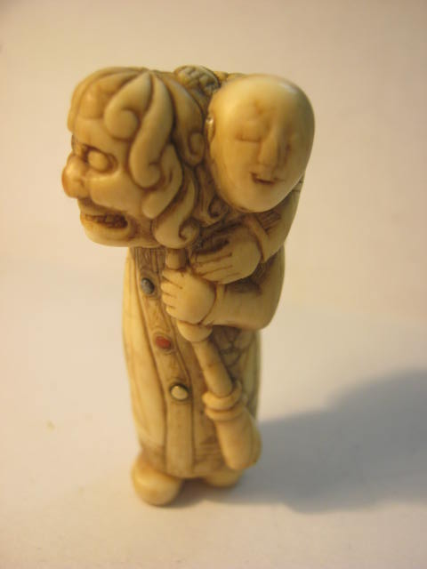 Japan, netsuke , Meiji period , according to the state of someone hanging on the belt (ie, the object used as directed) , inlaid stones , and similar corral a strange story , as it were molded from two traditional stories netsuke On the one hand it seems to Yuan Mu (the mother of a child , a symbol of maternal love, care , family happiness, happy personification of maternity) , On the other hand actor with a mask (the symbol of the variability of the world , the ability to treat life as a theater, to go beyond its narrow confines and be at least a few others ). can be called : Dad with a child actor <! - ~ 1 ~ -> not a masterpiece , but something decent ... Последний раз редактировалось EvgeniyMarkov; 17.05.2012 в 23:30. |