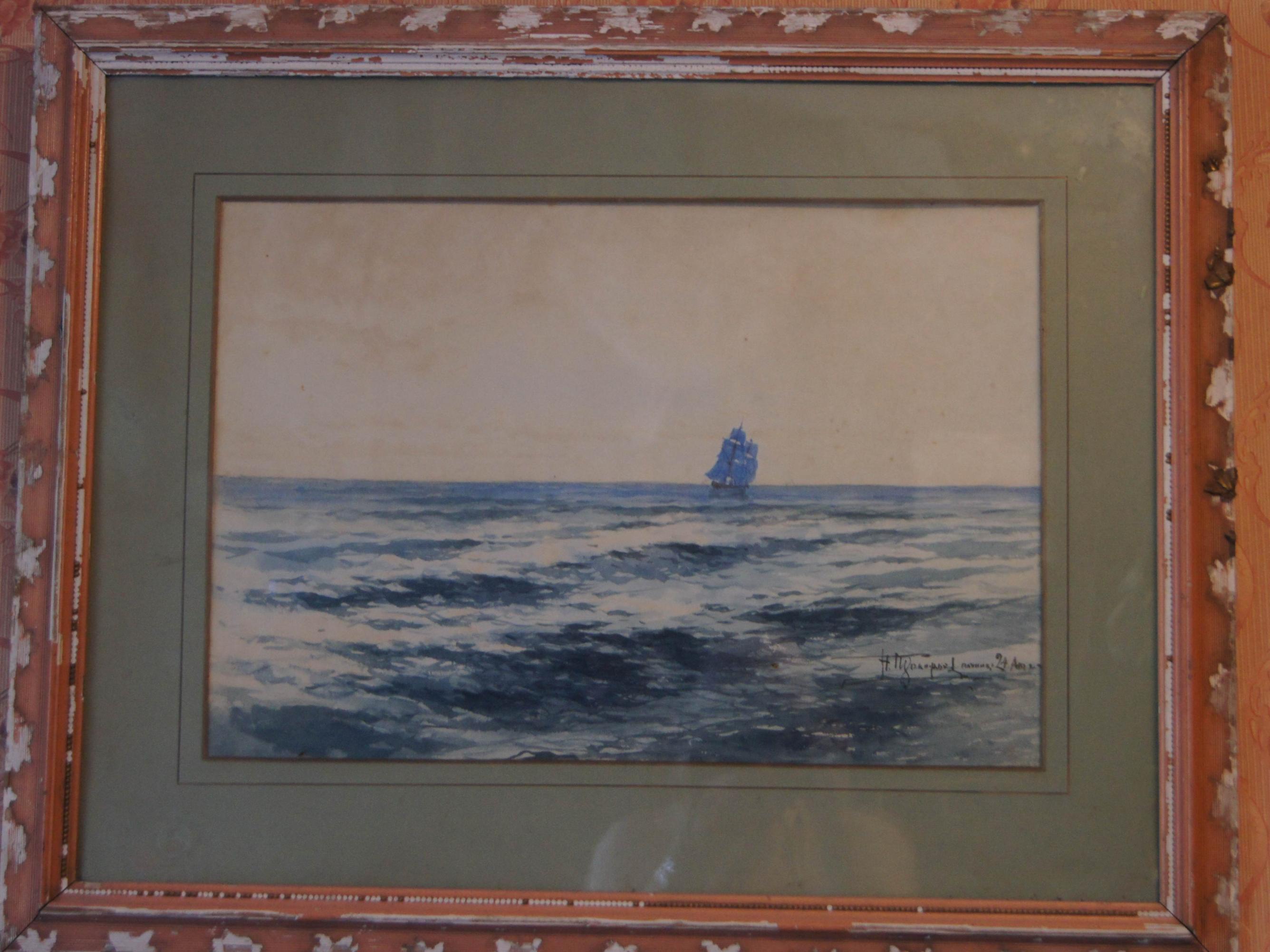 Куплена в магазине Петрограда в 1920 году военно-морским инженером «за настоящее понимание художником моря». Картина «выжила» до 1991 года. С тех пор содержится в том же виде. Реставрациям ни рама, ни картина не подвергались. Габариты: полотно - 480х330, поле паспорту 615х470, рамы - 710х570 м.м 70-100 т.р. |