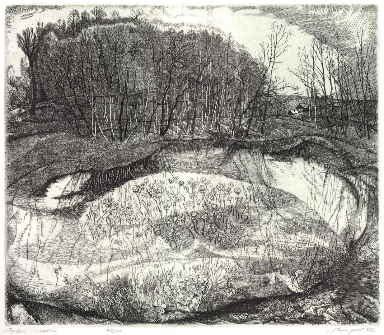 Первые цветы - первый офорт, купленный Государственной Третьяковской Галереей. Цена - 15000 руб.