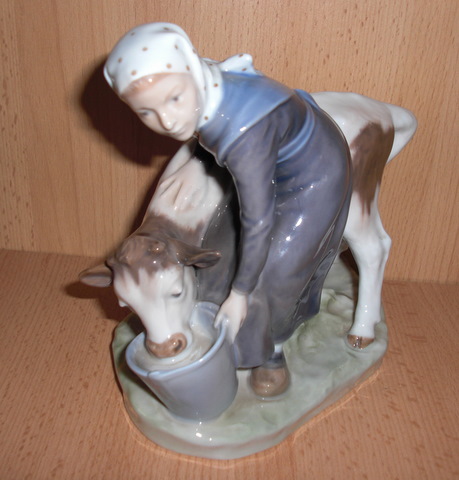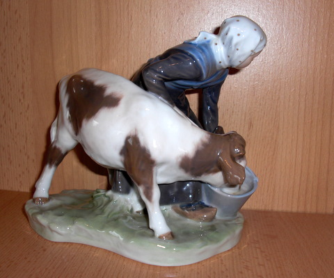 Royal Copenhagen.Девочка поящая телёнка.Автор Christian Thomsen (1860-1921).Высота 16 см,длина 16 см.Состояние идеальное без сколов,царапин,трещин и других повреждений.На цоколе подпись автора.