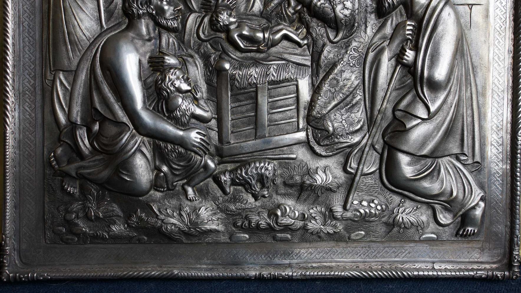Икона “Рождество Христово” в серебряном литом окладе. Российская Империя, XIX век.