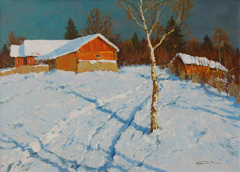 Кремер Марк Вениаминович: 1. Деревня, 2002 г., 50 х 70 см., холст/масло 2. Солнечный февраль, 2002 г., 42 х 70 см., холст/масло Кремер Марк Вениаминович родился в 1928 году в Ленинграде. Отец его был художником, и с малых лет взращивал в сыне любовь к живописи и искусству. Детство Марка Кремера прошло в прекрасном городе Пушкине, дом всегда был полон гостей – известнейших художников со всего Советского Союза. Это во многом определило выбор профессии юного Марка. В 1952 году он с отличием окончил Ленинградское высшее художественно-промышленное училище имени Мухиной. С 1956 – член Союза Художников СССР. Сегодня он один из самых талантливых и известных мастеров современного российского изобразительного искусства. Художник работает в различных жанрах: пейзаж, натюрморт, портрет и сюжетная живопись. Его пейзажи выполнены в лучших традициях российских мастеров пейзажа, таких как Куинджи, Борисов-Мусатов и Рылов. Марк Кремер пишет «сердцем». Его пейзажи о красоте российской глубинки просты и естественны как сама жизнь. В них свежесть воздуха и щемящее чувство уюта русской деревни соседствуют с ощущением необъятности России. Работы Марка Кремера находятся во многих известных частных коллекциях Москвы, Санкт-Петербурга, Киева, Сочи, Праги, Берлина, Бонна, Лондона, Токио, Вашингтона, Нью-Йорка, Чикаго, Сан-Франциско, и т.д.; его работы успешно продаются с аукционов Великобритании, Германии, Испании, Франции, Швейцарии и Японии. |