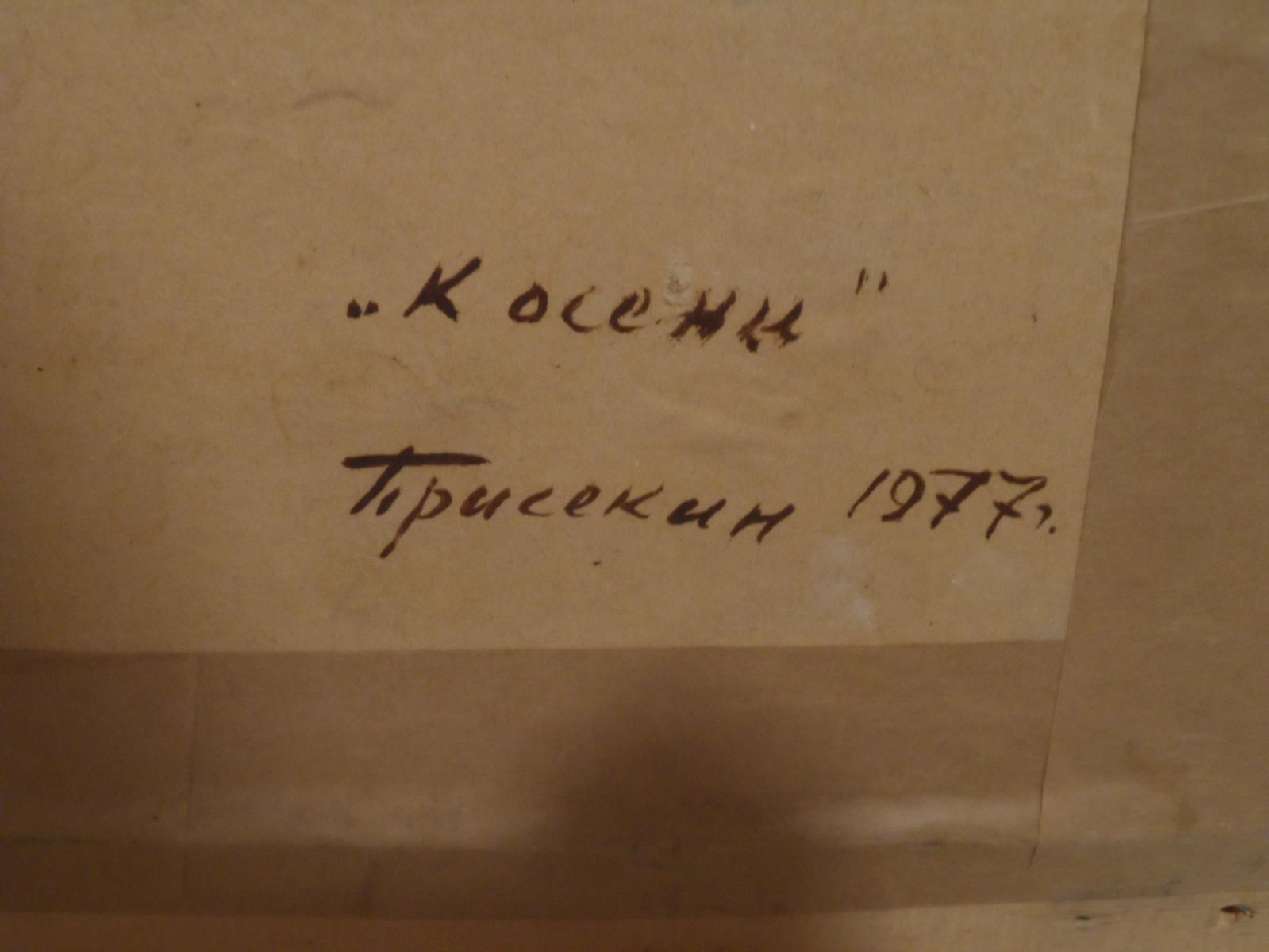 Работа народного художника России Николая Присекина Военный художник Студии им. М. Б. Грекова, автор картин и диорам на военно-патриотическую тему. В 1968 году присуждена золотая медаль имени М.Б. Грекова за участние в восстановлении панорамы Ф. А. Рубо «Бородинская битва», лауреат премии РСФСР им. Репина. "К осени" Картон/масло 35х50 1977 год |