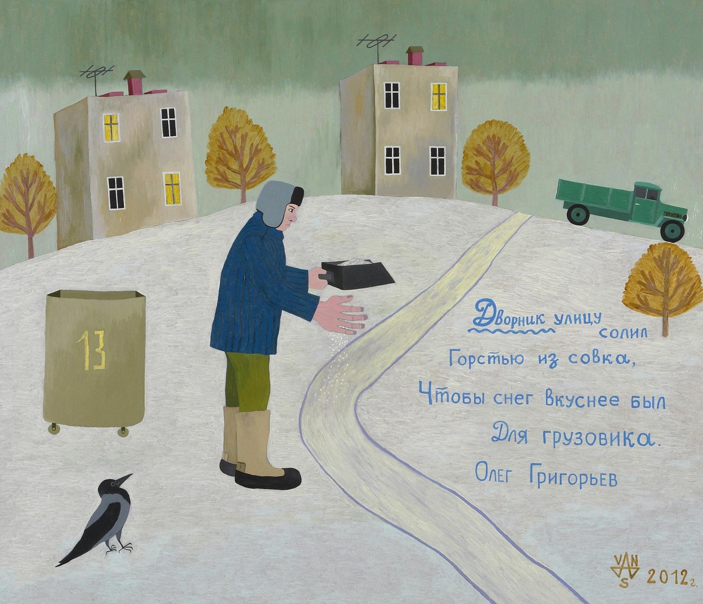 Lucy Voronov, Vasily Grigoriev , Kate Medvedev , Ivan Uruev Vladimir Anosov, Alevtina Pyzhova Leonid Purygin, Yuri Tatiana , etc etc. During the exhibition , the artist Vladimir Anosov prepared a special project for the anniversary of the poet Oleg Grigoriev . Art exhibition from the collection of studio " Dominant " Come visit >.