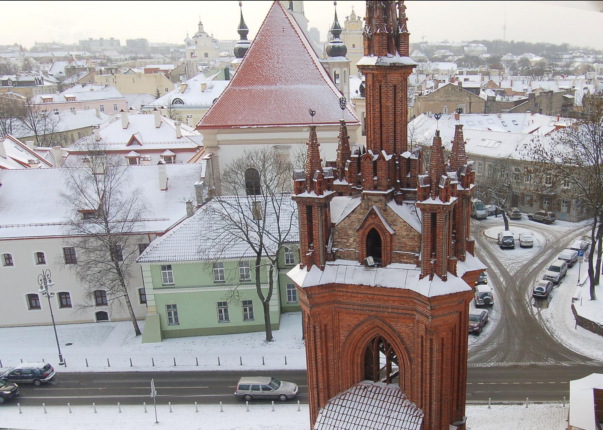 Church of St. Anne; view of the Old Town; broken windows after the January strike at the Government House; wall with teapots on the street Bernardinu